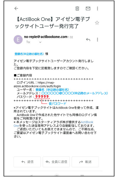 利用申請後7営業日内にアイゼン電子ブックサイトから「仮パスワード※1」の発行メール※2が届きます
